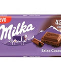 Indulge in the creamy, rich decadence of Milka España's Extra Cocoa Chocolate Bar. Made with a whopping 45% cocoa, this premium chocolate bar strikes the perfect balance between sweet and bitter, delivering a robust cocoa flavor that is expertly blended with the smoothness of Alpine milk chocolate. Each bite reveals the subtle crunch of ground hazelnuts, adding a unique texture and taste to this delightful treat. With its carefully selected ingredients, this chocolate bar promises an unforgettable taste experience to all chocolate lovers. Whether it's a personal treat or a gift to a special someone, Milka España's Extra Cocoa Chocolate Bar will not disappoint.