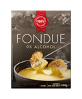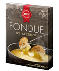 IngredientsA delicious ready-to-eat cheese fondue blend, made without alcohol. Perfect for family-friendly gatherings and cheese lovers of all ages.How to use:Heat gently in a fondue pot and stir until melted. Dip bread, vegetables, or meats.Suggested Recipes:Cheese fondue night, fondue grilled sandwiches, baked potato with fondue filling.Ingredients:Cheese blend, starches, milk solids (no alcohol).Country of origin:Switzerland