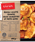 Savor the taste of Italy right at your dining table with the Tomato Ricotta Ravioli with Courgette Sauce and Pesto Rosso from Maison Thiriet. This delightful frozen meal is a gourmet delight, packed with authentic Italian flavors. Precooked ravioli filled with creamy ricotta cheese and tomato is perfectly complemented by a courgette sauce and a hearty dash of Pesto Rosso. The meal is further enriched with cherry tomatoes and fresh basil from Italy. The ingredients are carefully selected, keeping in mind our commitment to quality. This meal is not just delicious but also nutritious, making it a perfect choice for a quick and satisfying lunch or dinner.