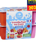 Delight in the refreshing taste of Carrefour's Cottage Cheese Yoghurts with Fruits. This delectable selection features a variety of fruity flavors including apricot, banana, strawberry, raspberry, and peach, each lovingly infused into creamy, high-quality cottage cheese yoghurt. Each serving is rich with essential nutrients like calcium and vitamin D, known for promoting bone health, and beneficial LACTIC ferments to aid in digestion. The use of pasteurized skimmed milk, cream, and milk powder sourced from France ensures a superior taste experience, making it a perfect dessert or snack for those seeking an indulgent yet healthful treat.