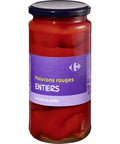 Suggested RecipesCarrefour's Whole Red Peppers are a perfect addition to a variety of dishes. Try them in a classic Ratatouille for a taste of traditional French cuisine. Use them as a base for a tangy red pepper soup, pair with couscous for a hearty vegetarian meal, or stuff them with minced meat and rice for a Mediterranean twist. Their rich flavor also works wonders in a red pepper and tomato pasta sauce.