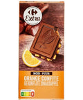 Indulge in the decadent taste of Carrefour's Dark Chocolate with Orange Chips. This is a luxuriously rich dark chocolate bar, beautifully harmonized with the tang of real candied orange peel. With a cocoa content of 50%, this chocolate bar boasts an intense chocolate flavor balanced with the zesty hit of orange. Crafted with exceptional ingredients such as sunflower lecithin, concentrated butter, and a hint of vanilla flavor, this premium chocolate offers a sumptuous treat for your taste buds. Plus, it's made with care and excellence synonymous with the Carrefour brand. Warning: It may contain traces of nuts and cereals containing gluten.