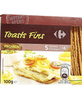 Carrefour's Wheat Fine Toasts are a delectable addition to your aperitif snacks and crackers collection. Crafted from 94% wheat flour, they are delightfully light and crispy. Each piece is enriched with the wholesome taste of barley malt flour and a hint of salt, making them ideal for a variety of spreads and toppings. Emulsifiers such as sodium stearoyl-2-lactylate and soya lecithin enhance their texture, while the addition of ascorbic acid helps preserve their freshness. Note that these fine toasts may contain traces of sesame seeds, milk, and nuts.