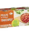 Introducing Carrefour's Basil and Oregano Tomato Pulp - a simple yet flavorful addition to your kitchen. This unique blend of tomatoes, basil, and oregano provides a rich and hearty taste, perfect for elevating your dishes. With 60% tomato content, a dash of salt, and an acidifier for balance, this pulp is an excellent base for pasta sauces, pizza toppings, or even as a condiment. It's worth noting that it may contain traces of celery, ideal for those who appreciate a veggie-forward flavor profile.