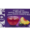Indulge in the fruity blend of Carrefour's Blackcurrant and Peach Herbal Tea Infusion. This captivating infusion is a delightful mix of apple pomace, hibiscus, blackcurrant, peach juice granulate concentrate, and rosehip, offering a perfect balance of tartness and sweetness. The wonderful combination creates a beautiful ruby red infusion that delivers a refreshing, tangy taste, and a fruity aroma that adds an exotic touch to your tea experience. Carrefour's Blackcurrant and Peach Herbal Tea Infusion is also caffeine-free, making it a perfect choice for an evening wind-down or a soothing nightcap.
