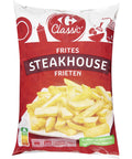 How to UseCarrefour's Steakhouse French fries are simple to prepare and ready to serve in minutes. Preheat your oven to 220°C (fan 200°C), spread the fries in a single layer on a baking tray and cook in the upper part of the oven for 15-20 minutes, turning them halfway through. For a more traditional, steakhouse experience, serve the fries with a sprinkle of sea salt and a side of ketchup or mayonnaise.