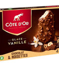 Indulge your senses with Côte d’Or's delectable Vanilla Ice Cream Sticks enveloped in creamy Milk Chocolate and crunchy Hazelnuts. This delectable dessert combines the richness of milk chocolate, the creaminess of vanilla ice cream, and the delightful crunch of roasted hazelnuts, creating an irresistible blend of flavors and textures. Made with quality ingredients, these ice cream sticks are a testament to Côte d’Or's commitment to delivering exceptional treats. Froths of vanilla ice cream are laced with ground vanilla beans for an authentic flavor, while a generous coating of milk chocolate and a sprinkle of hazelnuts add a delightful crunch. Perfect for a special dessert, a midday treat, or a festive celebration, these luxurious ice cream sticks are a decadent delight that will surely impress.