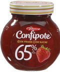 Indulge in the luxurious sweetness of our Confipote Strawberry Jam by Materne. Bursting with the intense flavor of strawberries, this delicious confiture fraises boasts an impressive 65% fruit content. We balance this with a 35% sugar blend, a hint of cherry juice, and a touch of pectin fruit and citric acid, mixing together to create a jam that is equally delightful on the palate as it is nourishing. Whether you're preparing a morning breakfast, a quick snack, or a decadent dessert, our strawberry jam is sure to elevate your meal with its irresistible aroma and flavor.