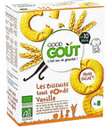 Introducing Good Goût's Organic All Round Vanilla Biscuits for tots 10+ months. These biscuits are crafted from 64% organic wheat flour and sweetened with 24.5% organic grape juice concentrate, ensuring a wholesome, natural treat for your young one. Every bite delivers the comforting aroma of 0.5% organic vanilla extracts, while 10.5% organic sunflower oil ensures a smooth, melt-in-the-mouth texture. Baked with a pinch of raising agent and fortified with Thiamin (Vitamin B1), these biscuits are not just delicious but also nutritious.