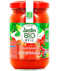 Jardin Bio's Spicy Arrabiata Tomato Sauce is your ticket to enjoying a fiery and flavourful Italian meal right at your home. Made with 84% tomatoes, this sauce is all-natural and organic, combining the robust flavours of semi-reduced tomato puree and tomato pulp with the zesty punch of spices such as paprika and cayenne pepper. The rich, extra virgin olive oil, the aromatic herbs like parsley and basil, and a hint of cane sugar deliver a balanced, savoury taste, making it an essential ingredient in your kitchen. This product is part of our savoury groceries range and is ideal for those who appreciate bio, organic condiments and cooking sauces.