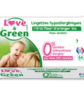 Experience the gentle and soothing cleanse of our Love & Green Hypoallergenic and Certified Cosmos Natural Organic Orange Blossom Wipes. Designed with your baby's delicate skin in mind, these wipes are a natural and eco-friendly choice for conscientious parents. Infused with the soft scent of orange blossom, the wipes are made with a blend of aqua, glycerin, citrus aurantium amara flower water, and other natural ingredients. Free from chlorine, petrochemicals, colorants, and paraffin, these wipes are as kind to the environment as they are to your baby's skin.