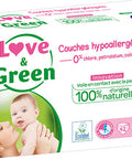 Pamper your little ones with our Hypoallergenic And Ecolabellised Nappies T4+ from Love & Green, uniquely designed for babies weighing between 9 and 20kg. Our nappies are crafted to be gentle on your baby’s delicate skin and the environment. Made from 100% cellulose certified by FSC (from responsible forests) and TCF (non-chlorine bleached), our nappies are free from chlorine, colorants, petrolatum, and paraffin, ensuring your baby's comfort and safety. The skin-in-contact veil is made from biobased materials, providing a soft, cushiony feel. Natural corn starch and FSC certified non-woven veneer are used for the outer shell, adding a touch of nature to your baby's care.