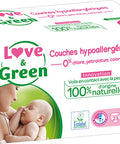 Introducing our Hypoallergenic And Ecolabellised Nappies T1 (2 To 5kg) by Love & Green, designed to give your baby the ultimate comfort and protection. Crafted from a cushion of 100% cellulose certified by FSC for responsible forest sourcing and non-chlorine bleaching, these nappies are kind on your baby's skin and the environment. The nappies also feature absorbent microbeads, a veil surface made of biobased materials, and an outer shell of natural corn starch, guaranteeing excellent absorbency while reducing the risk of irritation or allergies.