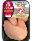 Introducing Duc de Mayenne's Cage Free Yellow Farm Chicken Legs - Red Label Frozen. These exquisite chicken legs come directly from the heart of France, embodying an authentic farm-to-table experience. Raised cage-free, these chickens benefit from the highest welfare standards, which ensures their meat is naturally tender, full of flavor, and devoid of any artificial additives - it's 100% chicken, no compromises. The 'Red Label' status signifies the top-quality of our chicken, making it the perfect choice for your gourmet cooking needs.