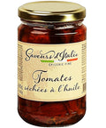 Savor the taste of the Mediterranean with Saveurs D’Italie's Sun-Dried Tomatoes in Olive Oil, a luscious delight that can transform your ordinary meals into gourmet dishes. These sun-ripened tomatoes, plucked at the peak of their freshness, are slow-dried under the Italian sun and then preserved in high-quality olive oil, enhancing their sweet and tangy flavor. The addition of garlic, oregano, parsley, and a hint of chilli pepper adds a unique and robust depth to the taste. As well as being delicious, these tomatoes are rich in antioxidants due to the presence of L-ascorbic acid E300.