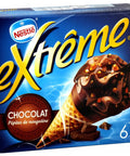 Indulge in the truly decadent, Chocolate Ice Cream Cone with Nougatine Chips EXTREME from NESTLE. This luxurious frozen treat boasts a combination of velvety smooth chocolate ice cream and intense dark chocolate ice cream. As if that wasn't enough, it is then highlighted with delightful crunches of nougatine chips and snugly nestled inside a crispy waffle cone. Topping off this indulgence is the irresistible EXTREME candy tip, designed to satisfy your sweet tooth. Crafted with Rainforest Alliance Certified cocoa and sustainably sourced vegetable fats, this ice cream cone is a guilt-free pleasure.