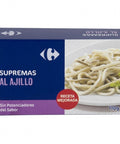 Discover the gastronomic delight of the Supremas al ajillo, an exquisite Garlic La Gula from the well-known brand Carrefour Espana. These succulent pieces of surimi-based elver substitute are marinated in fragrant garlic and soaked in premium sunflower oil for a taste that's unforgettable. Each bite brings you a unique combination of flavors - delicate, slightly sweet surimi, infused with the bold undertones of garlic and the smooth richness of sunflower oil. This product is ideal for those who enjoy indulging in unique European delicacies, and perfect for adding a touch of Spain to your culinary endeavors. Please be aware that this product contains egg, fish, milk, cereals containing gluten, soya, and molluscs.