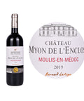 Experience the lush flavors of Chateau Myon de L’Enclos's Cabernet Sauvignon Merlot Red Wine, Moulis-en-Médoc Cru Bourgeois 2019. A beautifully structured wine from the notable Bordeaux region, this selection exudes a brilliant blend of Cabernet Sauvignon and Merlot grapes, creating an enticing symphony of flavors that will captivate your palate. This blend is celebrated for its remarkable balance, boasting robust tannins and an expressive, complex character. Its vivid notes of ripe black fruits, subtle spices, and soft oak nuances culminate in a generous, full-bodied finish that wine connoisseurs will appreciate.
