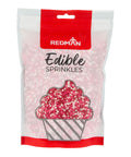 Our Decor Sprinkles are made in USA. This product is available in packets of 100g and 500g. It is available in the following designs - Hundreds and Thousands, Jingle blend, Jumbo heart, Gingerbread house, Mini red, Mini Red white & pink heart, Mocha beans, Moon & star, Red, Red white & blue star, Star & stripes, Snowflake, Twinquin festive, Candy cane peppermint, White & pink, Pumpkin shaped, Rainbow, Red & Green tree and Red hearts.