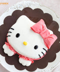 Hello Kitty chocolate sponge cake, Hello Kitty butter cake, Hello Kitty birthday cakes, Hello Kitty themed party desserts, Hello Kitty face-shaped biscuits.