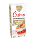 IngredientsPremium dairy whipping cream with 35% fat content. UHT treated for extended shelf life while retaining a rich and creamy texture.How to use:Chill and whip for best volume. Use in desserts, sauces, or toppings.Suggested Recipes:Whipped cream topping, ganache, creamy soups, tiramisu.Ingredients:Cream (Milk), stabiliserCountry of origin:France