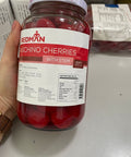 MARASCHINO CHERRY- RED 26OZ is a delightful treat from the Redman brand. These cherries, sourced from the finest orchards, are preserved in a sweet syrup, enhancing their natural flavor. With a vibrant red hue, they add a pop of color and a burst of sweetness to any dish. The product comes in a 26 oz jar, ensuring you have enough cherries to last you a while. The cherries have been carefully processed with natural and artificial flavors, permitted colors and preservatives, and corn syrup for that characteristic Maraschino taste.