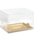 Discover the elegance of showcasing your bakery creations with the CLEAR CAKE CASE WITH GOLD TRAY (K21). This set features a transparent cake case and a shimmering gold tray that amplifies the visual appeal of your baked goods. Whether you're gifting, displaying, or transporting your delicious cakes, this product ensures they make a statement. With dimensions of 205x145x122mm, the cake case is spacious enough for an assortment of cake sizes.