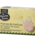 Experience the refined taste and delicate texture of De Nuestra Tierra's Hake Eggs In Olive Oil And Lemon. Hand-selected for their premium quality, these hake eggs are meticulously cleaned and cooked to perfection. Thinly sliced and carefully canned by hand, they are then bathed in a luxuriously rich olive oil infused with a hint of cayenne for a subtle kick. To complement the delicate fish flavour, a slice of lemon is included to add a refreshing citrus twist. This delicacy, part of our gourmet Savoury Groceries range, promises a culinary experience like no other.