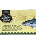 Indulge in the culinary delights of Spain with De Nuestra Tierra's Southern Mackerel in Olive Oil. This premium quality canned fish is sourced from Huelva, Spain, and is made using specially selected raw materials, a testament to the rich Spanish gastronomy. Each mackerel fillet is carefully caught at the peak of the fishing season, ensuring that it retains maximum nutritional and flavor properties. The mackerel is meticulously peeled and hand-packed, with the only additions being a drizzle of olive oil and a touch of sea salt. This simple but exceptional combination yields a canned fish of unmatched quality, ready to elevate your meals with its rich flavor and texture.