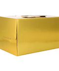 Add a touch of elegance to your festive treats with our Plain Gold Colour Log Cake Box. Measuring 13.375x7x6"", this box is perfect for showcasing your delicious log cakes or other baked goodies. With its striking gold colour, it's sure to catch the eye and make your cakes even more appealing. Ideal for special occasions, parties or simply safe transportation of your culinary creations.