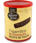 Indulge in the luxurious taste of De Nuestra Tierra's Cigarrillos de Chocolate de Tolosa. These exquisite chocolate biscuits, crafted in the heart of the Basque Country, are a true testament to the rich culinary heritage of Spain. Uncover the layers of delight as you bite into the rich 42% chocolate coating, made with premium cocoa mass, cocoa butter and a hint of natural vanilla flavouring. This delicacy is baked to perfection with pasteurised egg white, butter and wheat flour. Every bite offers an irresistible blend of sweetness and crunchiness, making these Chocolate Cigarettes Biscuits a must-have for every connoisseur of sweets. Note: These biscuits may contain traces of nuts, peanuts and sesame seeds.