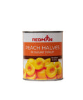 IngredientsMade in South Africa, our Redman Peach Halves in Syrup are deliciously sweet and great for desserts.How to useUse on pastries like peach tarts or peach danishes, slice and use as toppings on shaved ice desserts, ice-cream or yoghurt. Suggested RecipesRecipe suggestions include Peach Upside Down Cake, Peach Cobbler and Peach Crisps.IngredientPeaches, Water SugarAllergen
