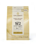 Our WHITE COUVERTURE CHOCOLATE 28% 2.5KG is a classic Belgian blend, offering a creamy, caramelly and mildly vanilla flavour that melts in your mouth. It's enriched with the finest grade of milk from cows grazing on Belgian pastures and sugar from locally grown sugar beets, handcrafted by the renowned brand Octaaf Callebaut®. Known for its polyvalent usage and medium viscosity, it is a perfect choice for both amateur and professional chefs looking to create a variety of delightful sweet treats.