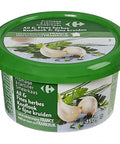 Indulge in the savory flavors of Carrefour's Garlic and Fine Herbs Cheese Spread. This gourmet spreadable cheese is made from a delicious blend of skimmed milk milk, pasteurized cream, parsley, chives, garlic, salt, natural garlic aroma, dehydrated buttermilk, milk proteins, pepper, and lactic ferments. It is a perfect choice for cheese lovers looking for a rich, creamy texture with a delightful blend of herbs and a hint of garlic. This product may contain traces of fish and hull fruit. Made in France, this cheese spread boasts of an authentic taste that is both delicious and satisfying.