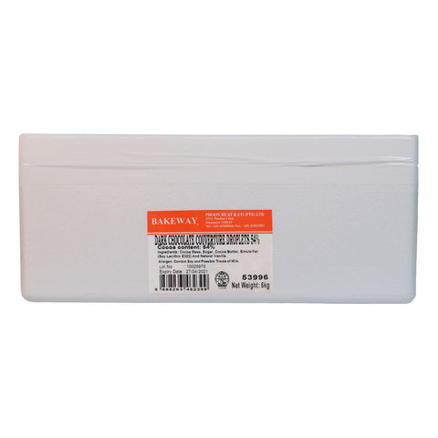 Our Bakeway Dark Chocolate Couverture Drops are made in Italy. It contains 54% cocoa and has a rich, bittersweet taste. This product is available in packets of 250g, 1kg, 6kg and 10kg.