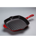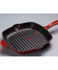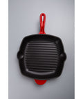 28CM SQUARE CAST IRON ENAMEL GRILL PAN RED