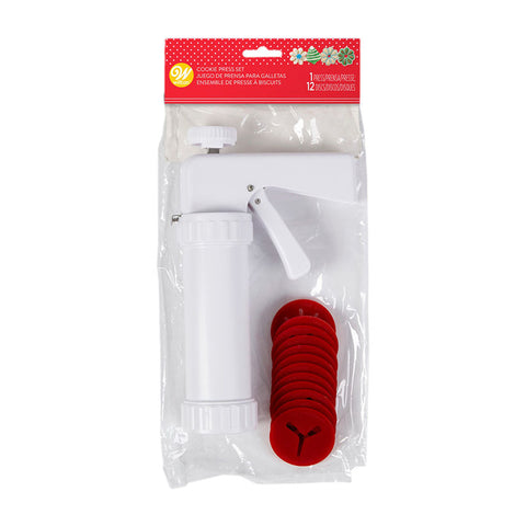 How to UseSimply fill the cookie press with your dough, select your desired disc, and press out your cookies onto an ungreased cookie sheet.