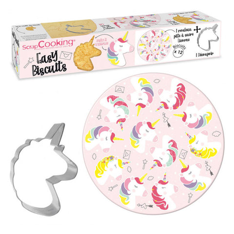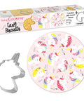 Sugar paste roll: Ingredients: sugar, glucose syrup, corn starch, rice fat, humectants: sorbitol, invertase; thickening agents: E414, E415; safflower concentrate, natural vanilla flavouring, colourings: E120, E131, E153. May contain traces of wheat and nuts. Average nutritional values per 100 g / Energy values: 1721 kJ – 407 kcal / fats: 6.8 g - of which saturated fatty acids: 2.5 g / carbohydrates: 86 g - of which sugars: 75 g / protein: <0.5 g / salt: <0.01 g. Net weight: 150 g. Dimensions: Ø 29.5 cm Storage: store at room temperature, away from light and humidity. Unicorn cookie cutter: Material: Food grade stainless steel Dimensions: 5.9 x 8.5 x 2.5 cm Cleaning instructions: Wash in warm water and dry before first use, and then after each use.