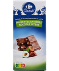 Indulge your senses with the luxuriously decadent flavor of Carrefour Milk Chocolate With Whole Hazelnuts. This premium chocolate bar is a delightful combination of smooth milk chocolate and crunchy whole hazelnuts, offering a perfect balance of sweetness and nutty richness. The chocolate features a 30% minimum cocoa content, ensuring an authentic, rich chocolate taste. The ingredients are carefully selected, from the creamy skimmed milk powder to the flavorful hazelnut paste, all contributing to a memorable tasting experience. Allergy advice: contains milk, hazelnuts and may contain traces of other nuts and cereals containing gluten.