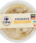 Indulge in the taste of the Mediterranean with Carrefour's Extra Hummus. This rich, delectable spread is crafted with a hearty base of 59.5% cooked chickpeas, harmoniously married with sesame paste, lemon juice, and a blend of virgin and olive oils. Our hummus is accented by notes of garlic, salt, and a subtle hint of acid provided by citric and lactic acids. Sunflower oil gives it the perfect, smooth consistency, while the preservative potassium sorbate ensures it stays fresh for your enjoyment.