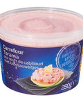 Indulge in the savory delights of Carrefour's Cod Egg Tarama, a captivating blend of smoked cod eggs and canola oil. This seafood deli product exudes a rich, creamy texture with a hint of tanginess from the lemon juice concentrate, delivering an exceptional gastronomic experience. The product is sourced from premium quality cod, ensuring that the taste retains its authenticity. The Cod Egg Tarama is perfect for seafood enthusiasts and those looking for a unique, tantalizing aperitif.