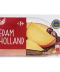 Indulge in the richness of Holland Edam PGI, a premium cheese straight from the dairy farms of Holland, now brought to you exclusively by Carrefour. Crafted from pasteurised cow's milk and seasoned with a hint of salt, this cheese is a delightful treat for your taste buds. With every bite, you enjoy the natural goodness of lactic ferments, rennet, and the distinctive hue of carotenoids. The cheese's rind, preserved with natamycin, may be inedible but it locks in all the flavours, ensuring you experience a fresh, creamy taste every time.