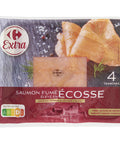 Experience the rich, complex flavors of Scotland with Carrefour's Scottish Smoked Salmon. Expertly cold-smoked following traditional methods, this Atlantic salmon is lightly seasoned with a 3% salt cure to enhance its natural taste, providing you with a delicacy that's both healthy and delicious. Packed under strict hygiene conditions, our smoked salmon is a testament to Carrefour's commitment to quality, making it a prime choice for all seafood enthusiasts.