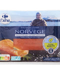 Indulge the taste buds with Carrefour's exquisite Norway Smoked Salmon. It is an authentic, high-quality salmon sourced from the deep, cold waters of the Atlantic and expertly smoked over beechwood for a distinctive flavor profile. This premium smoked salmon is free of artificial preservatives, carefully packed with only 3% salt added, which enhances the natural taste and texture of the fish. Kept fresh in your refrigerator, our smoked salmon delivers the gourmet quality you'd expect from a seafood deli straight to your home.