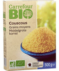 Indulge in the hearty texture and natural goodness of Carrefour's Organic Medium Grain Couscous. This high-quality product is made from 100% organic durum wheat semolina proving its commitment to sustainability and your health. Its medium grains are perfect for soaking up flavors and adding a pleasant bite to your dishes. What sets our couscous apart is its easy preparation and adaptability to a variety of culinary creations. It is not only delicious but also provides a rich source of fibre and protein, making it a nutritious addition to your meals.