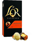 Experience the delightful taste of L'Or Espresso's Delizioso Intensity 5. This espresso blend offers an indulgent aroma and exquisite flavor, contributing to a genuinely rich and fulfilling coffee experience. Each capsule is meticulously crafted, ensuring a perfect balance of taste and intensity, making every sip a moment of pure pleasure. This is an excellent choice for coffee connoisseurs who love a well-crafted espresso with a medium intensity, offering a satisfying full-bodied flavor that is both smooth and robust.