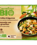 Introducing Carrefour's Organic Mixed Of 6 Veggies. A carefully crafted blend of organic vegetables, frozen at the peak of freshness to preserve their nutritional benefits and flavor. This bountiful combination of broccoli, cauliflower, zucchini, carrots, green beans and vibrant red and yellow peppers brings a vibrant burst of color and nourishment to your meals. Complemented with a savory sachet of organic spices and seasonings including curry, paprika, onion, black pepper, celery, and fennel, this tempting medley offers an effortless way to add a healthy and delicious twist to your dishes. With each vegetable constituting at least 4.8% of the mix, you can be assured of a balanced variety in every mouthful.