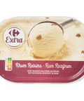 Dive into a world of extraordinary flavor with the Carrefour Rum and Raisin Ice Cream. This frozen delight is a unique blend of expertly crafted rum ice cream, made from rehydrated skimmed milk, cream, and a sumptuous mix of glucose-fructose syrup and sugar for a sweet and satisfying taste. Infused with 2.15% gel rum and 14% rum macerated grapes, the cream delivers an intoxicating flavor that's just right. The ice cream is stabilized with natural thickening and coloring agents, ensuring it maintains its creamy, luscious texture. With an alcohol content of 3.2% vol and potential traces of nuts, it's an adult treat that's perfect for late-night indulgences or sophisticated dinner parties.