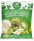 Introducing Carrefour's Mix Cabbage Florets – a delicious blend of 34% cauliflower, 33% broccoli, and 33% romanesco cabbage. Frozen at peak freshness to lock in their natural goodness, these versatile veggies are ideal for creating nutritious and hearty dishes all year round. They're a healthy source of dietary fiber, vitamins, and minerals, offering not just taste, but also a wealth of nutritional benefits to complement your balanced diet.