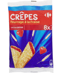 Indulge in the delightful sweetness of Carrefour's Pancakes with Strawberry Filling, the perfect treat for your sweet tooth. Crafted from a rich blend of 34% fresh whole milk, 24% wheat flour, extra-fresh eggs, and a generous 18% strawberry content, these pancakes offer an enticing and rich flavour that's truly irresistible. These pancakes also contain glucose-fructose syrup, sugar, concentrated butter, rapeseed oil, and natural strawberry flavouring, all balanced with the right hint of acidity from citric acid. This product is a convenient comfort food for both kids and adults, but please note it may contain traces of nuts and soy.